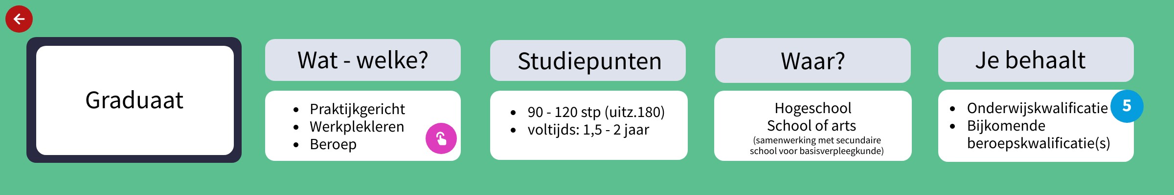 - Je moet voldoen aan de toelatingsvoorwaarden om te kunnen starten: toelating graduaatsopleiding.